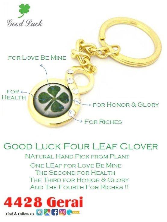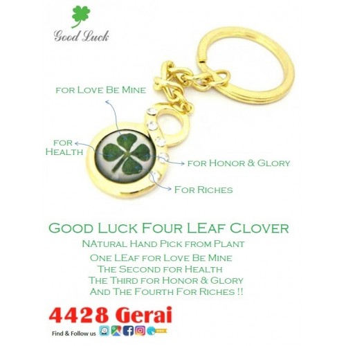 - Product Code: GOOD LUCK FOUR LEAF CLOVER - Keychain GOLDEN 8 FATT FATT